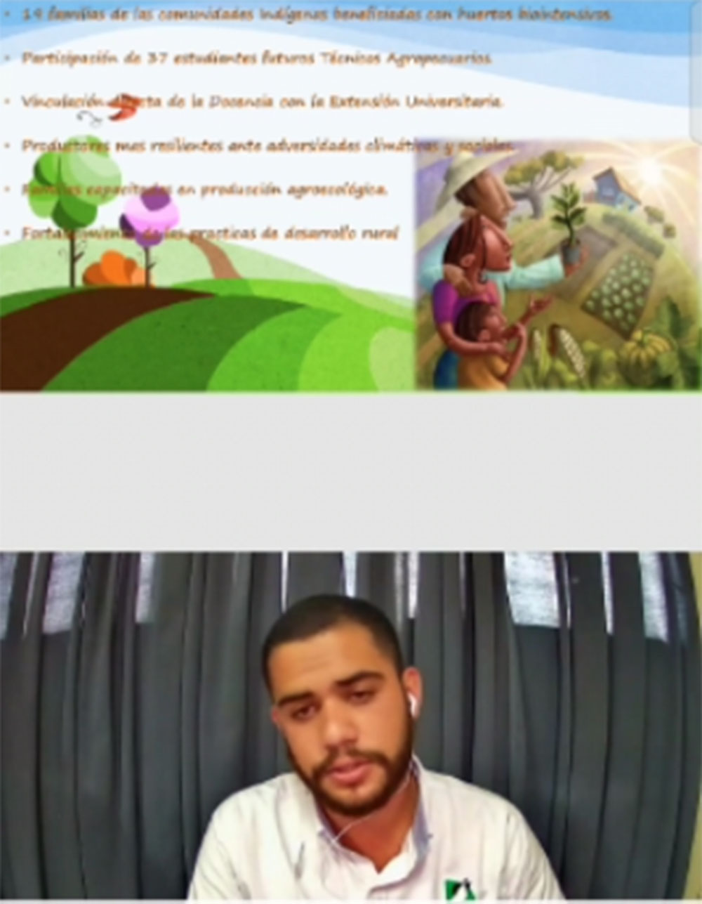Irapuato, Gto., a 28 de abril de 2021.- La socialización de prácticas agroecológicas con multifactores para fomentar la seguridad y soberanía alimentaria y nutricional en las familias campesinas, fue el tema que se presentó en el primer Webinar internacional organizado por el Grupo Estudiantil de Innovación y Transferencia Tecnológica (GITTeco) de la Universidad de Guanajuato (UG).