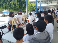 Los grupos organizados: ASME SOMIM UG, Pi Tau Sigma y IEEE Photonics UG, acompañados por las y los profesores que les asesoran, visitaron la Escuela Primaria Pemex II, en la ciudad de Salamanca, donde también se dieron cita niñas y niños de la escuela Pemex I y la primaria Raquel Contreras Cachú.