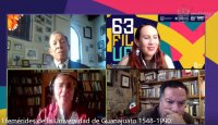 Guanajuato, Gto., a 27 de marzo de 2021.- Con la participación de tres especialistas, se llevó a cabo la mesa Efemérides de la Universidad de Guanajuato 1548-1990, evento virtual que se llevó a cabo como parte de las actividades de la edición 63 de la Feria del Libro de la Universidad de Guanajuato (FILUG).
