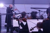 Guanajuato, Gto., a 25 de junio de 2021.- Con la interpretación de la Orquesta Sinfónica de la Universidad de Guanajuato (OSUG), se llevó a cabo el concierto inaugural de las conmemoraciones por los 200 años de la consumación de la independencia de México y de agradecimiento al sector salud, por su desempeño durante la emergencia sanitaria.