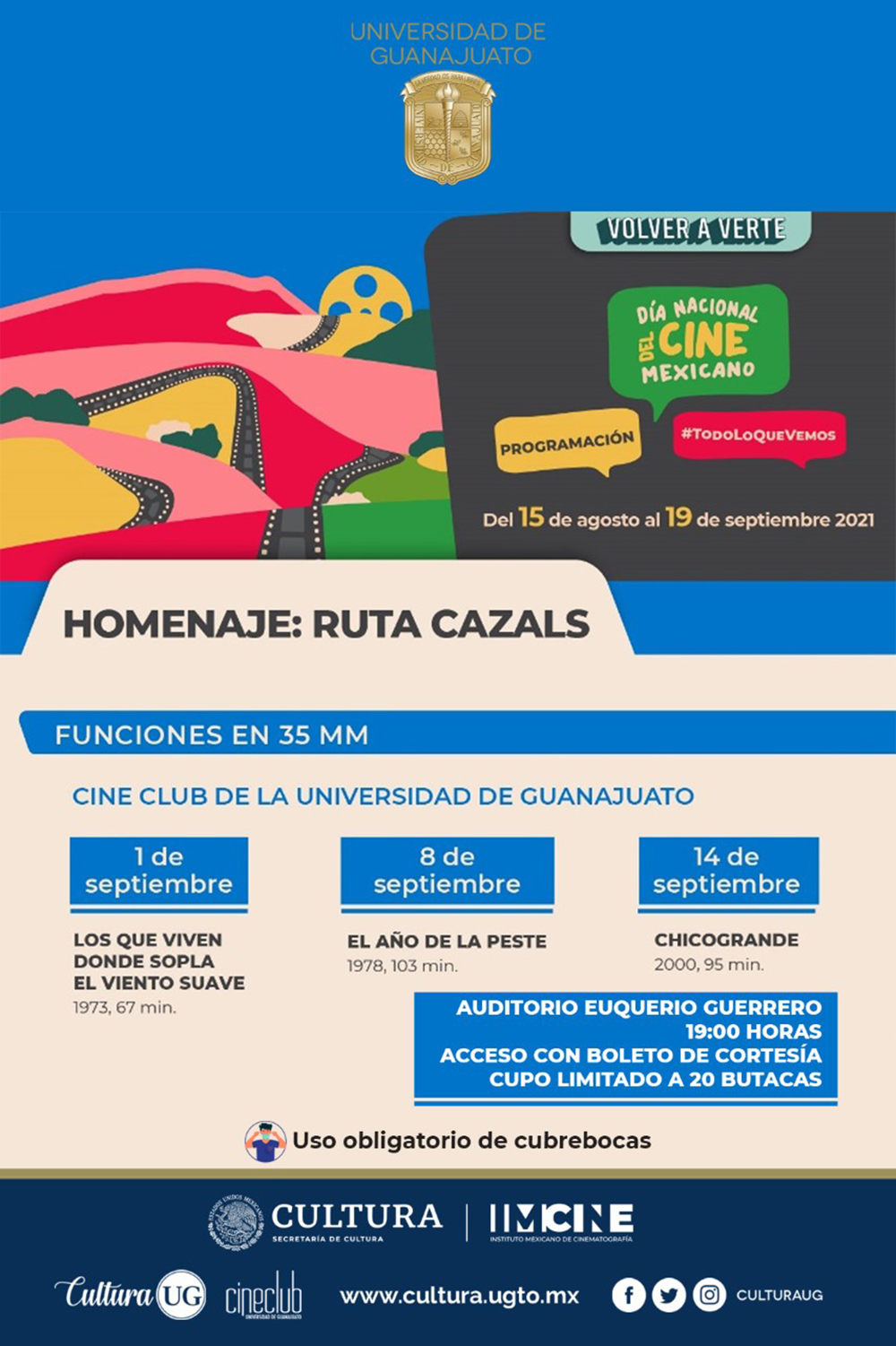 Para más información sobre la forma de adquirir los boletos y el protocolo sanitario de las actividades culturales presenciales, se puede consultar el sitio www.cultura.ugto.mx