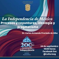 Mientras que ese mismo día en el marco de los 200 años de la Consumación de la Independencia de México a las 19:00 horas se presentará la Charla "La Independencia de México. Procesos y coyunturas, ideología y pragmatismo" con el Dr. Carlos Armando Preciado de Alba profesor-investigador del Departamento de Historia de la Universidad de Guanajuato.