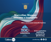 La UG también invita, a la conferencia "200 años de la consumación de la independencia de México, Marcelino Mangas, educador e insurgente" en la que el Mtro. Camarillo contará las vicisitudes de uno de los personajes más emblemáticos de la UG. La cita será este 30 de septiembre a las 19:00 horas, a través de Facebook Live @CulturaUG y @EspiralForoUniversitario