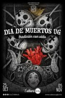 Las tradiciones mexicanas también tienen un espacio en la agenda cultural de la UG: ¡Ya viene! "Día de Muertos UG, Tradición con vida", incluye una cartelera de actividades académicas, deportivas, artísticas y lúdicas -en esta ocasión, de una edición híbrida-, con una imagen inspirada en el personaje de "la muerte" de la tradicional Danza del Torito, a través del grabado en aguafuerte de Miguel Ángel Mireles, artista egresado de esta Alma Mater.