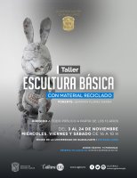 En museos se tienen los talleres: "Escultura básica con material reciclado" por Germaín Flores Sierra del 3 al 24 de noviembre de 16:00 a 18:00 horas, así como, "Diversión a través del arte", a cargo de Nahely Josefina Herrera Anda del 4 de noviembre al 7 de diciembre de 16:00 a 18:00 horas, dirigido a público infantil de 6 a 12 años, ambos en el Museo de la Universidad de Guanajuato. El cupo es limitado con entrada libre, para reservar lugar en Esta dirección de correo electrónico está protegida contra spambots. Usted necesita tener Javascript activado para poder verla..