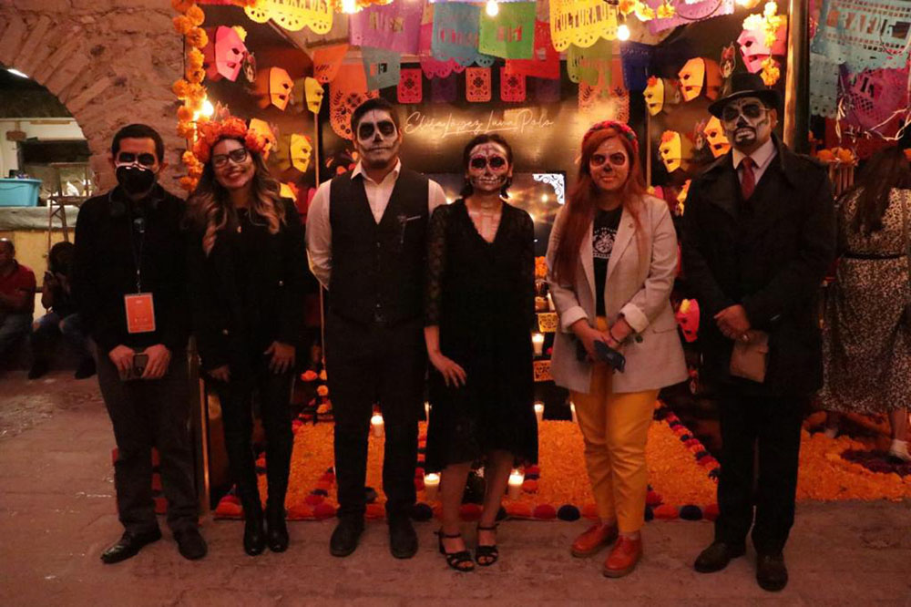 Guanajuato, Gto., a 29 de octubre de 2021.- Con el objetivo de fortalecer las tradiciones mexicanas, se llevó a cabo la presentación de ofrendas con altares de muertos en el Mesón de San Antonio.