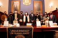 Guanajuato, Gto. a 24 de noviembre de 2021.- Comentada por estudiantes de licenciatura, se realizó la presentación editorial de la obra "Vías para el Tratamiento de la Corrupción en el Sistema Mexicano", en el marco de los 40 años de Conmemoración y Reconocimiento del Departamento de Investigaciones Jurídicas y la Refundación del Seminario de Investigaciones Jurídicas de la Universidad de Guanajuato (UG).