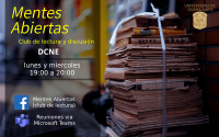 El Club de lectura y discusión: Mentes Abiertas DCNE, te invita a sumarte los días lunes y miércoles en punto de las 19:00 horas a través de Teams y FB: @Mentesabiertasclubdelectura, a un espacio para analizar, comentar, aportar e incluso discutir lecturas con temática diversa.