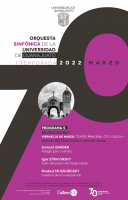En esta ocasión presentarán a Mussorgsky, acompañados de su Director Titular Roberto Beltrán Zavala para interpretar, Adagio para cuerdas, de Samuel Barber; Suite del pájaro de fuego (1919) de Igor Stravinsky; y Cuadros de una exposición de Modest Mussorgsky. Boletos a la venta en la taquilla del Mesón de San Antonio: martes a viernes de 10 a 14:00 horas. Cupo limitado.