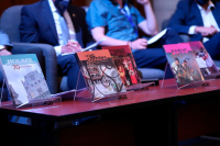 Guanajuato, Gto., a 07 de abril de 2022.- La Universidad de Guanajuato a través de una colección editorial de cinco tomos que integran "Conmemoraciones UG" rescata la historia universitaria a lo largo de sus 290 años. Esta presentación se realizó en el marco de la programación de la 64 Feria Internacional del Libro de la Universidad de Guanajuato (FILUG).
