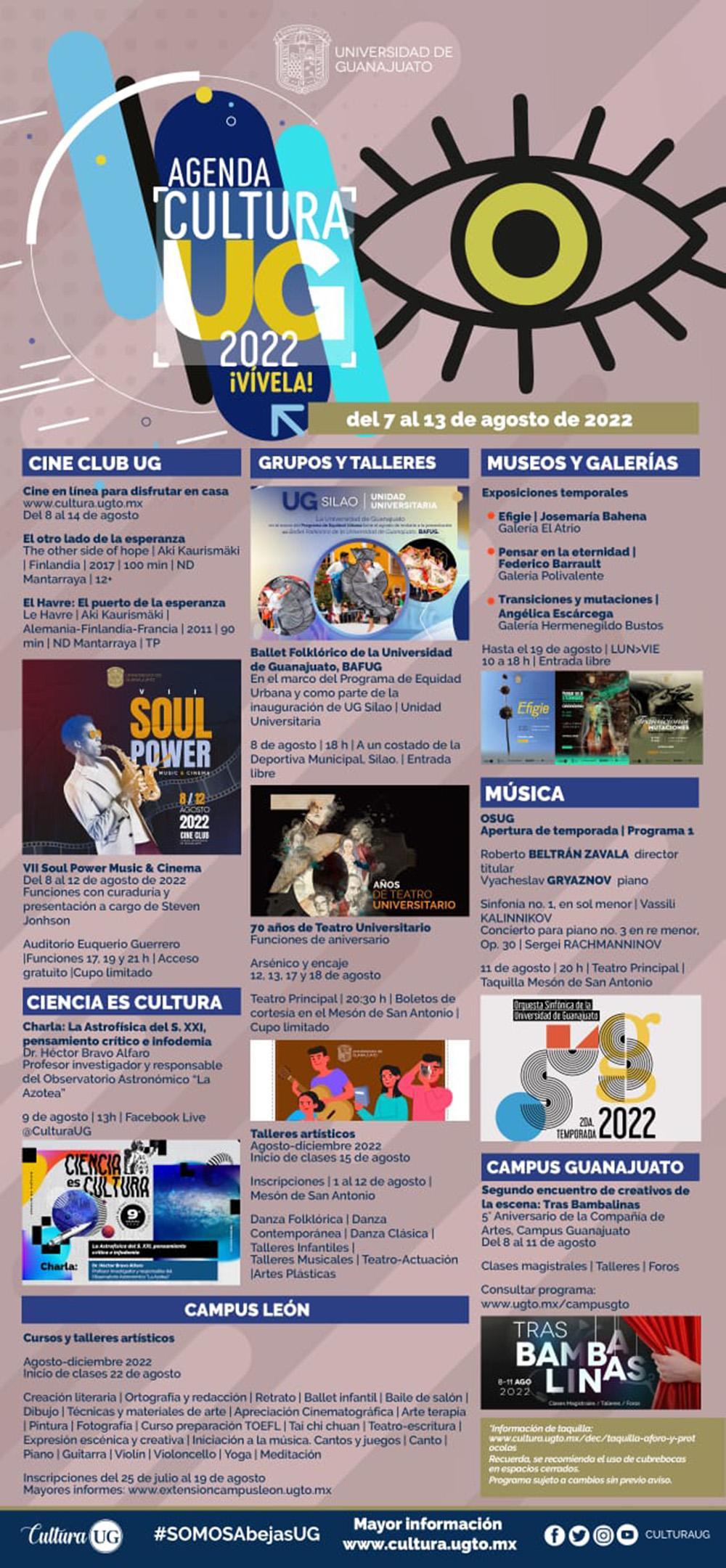 Inicio | QUEHACER INSTITUCIONAL | Cultura | Consulta las actividades de la Agenda Cultural UG