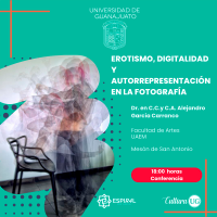 El Doctor en Artes y Diseño por la Universidad Nacional Autónoma de México, Edgar Osvaldo Archundia Gutiérrez, dará comienzo con la conferencia de "Fotodiseño" en la que llevará a las y los asistentes a un recorrido entre la relación del lenguaje de diseño gráfico y la fotografía; por su parte el Dr. Alejandro García Carranco hablará sobre el consumo de la fotografía, selfies y nudes, como parte de la charla "Erotismo, digitalidad y autorrepresentación en la fotografía".