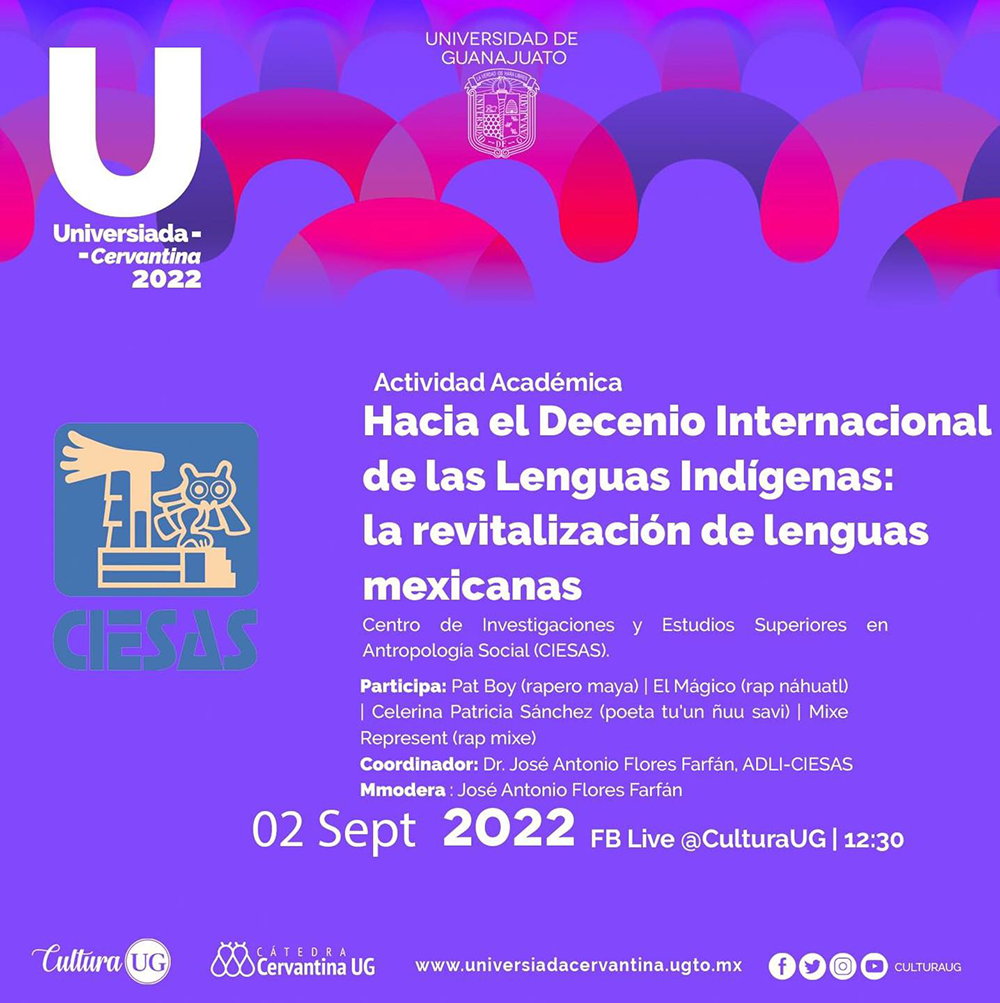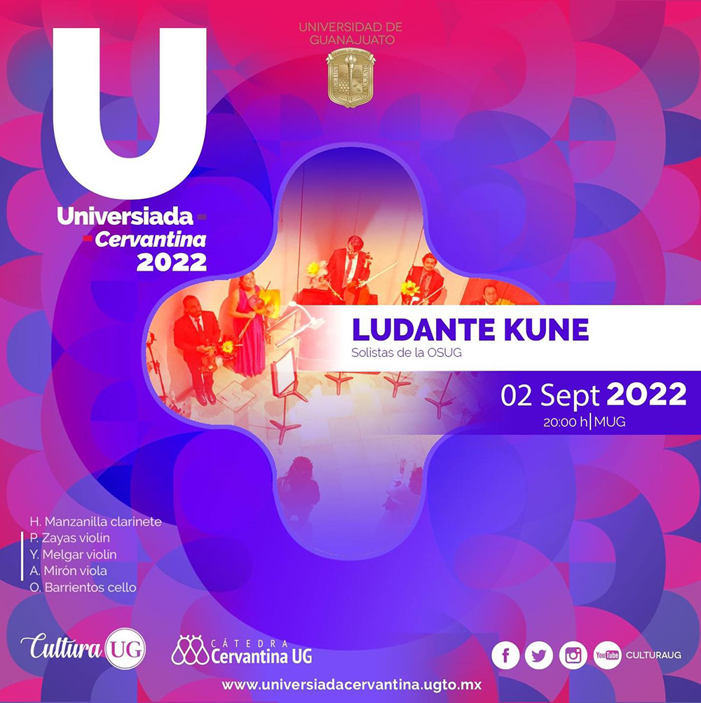 Guanajuato, Gto., a 02 de septiembre de 2022.- Conoce y disfruta de las actividades que conforman esta semana la Agenda Cultural de la Universidad de Guanajuato (UG). Comienza disfrutando de las actividades artísticas como parte de la Universiada Cervantina 2022, las cuales englobaran la danza, teatro, música, así como un espacio de encuentro estudiantil; a lo que se alinea la muestra de Cine Universitario, las charlas de Ciencia es Cultura; conferencias; talleres, como la Cátedra "Jorge Ibargüengoitia" entre otras actividades.