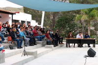 Les dirigió unas palabras a las y los participantes, "Si desean cantar lo pueden hacer y lo están haciendo, déjense guiar para que consigan un buen dominio y equilibrio de su voz, disfruten el placer de cantar", añadió. También agradeció a las directoras y directores el apoyo que han otorgado a cada participante.