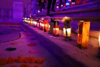 Para la elaboración de esta ofrenda se dispuso de 30 brazadas de flores y 50 cajas de veladores, lo que significa alrededor de mil veladoras. Cada tramo de la Escalinata del Edificio Central está dividido entre grupos y dirección de la universidad, a cargo de la Dirección de Desarrollo Estudiantil, con apoyo de la Dirección General de Extensión Universitaria.