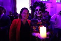 Guanajuato, Gto., a 01 de noviembre de 2022.- Entre luces de veladoras que iluminaban los coloridos papeles picados, bajo el aroma del copal y el cempasúchil, acordes que reviven la memoria de aquellas personas que han partido al Mictlán (el conocido inframundo de la cultura mexica) fue como la comunidad de la Universidad de Guanajuato (UG) conmemoró el Día de Muertos, una de las tradiciones más emblemáticas en la cultura mexicana.