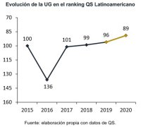 Guanajuato, Gto., a 22 de mayo de 2020.- La Universidad de Guanajuato avanzó siete lugares en el Ranking Latinoamericano de Universidades QS y se colocó, por tercer año consecutivo, entre las 100 mejores universidades de América Latina.