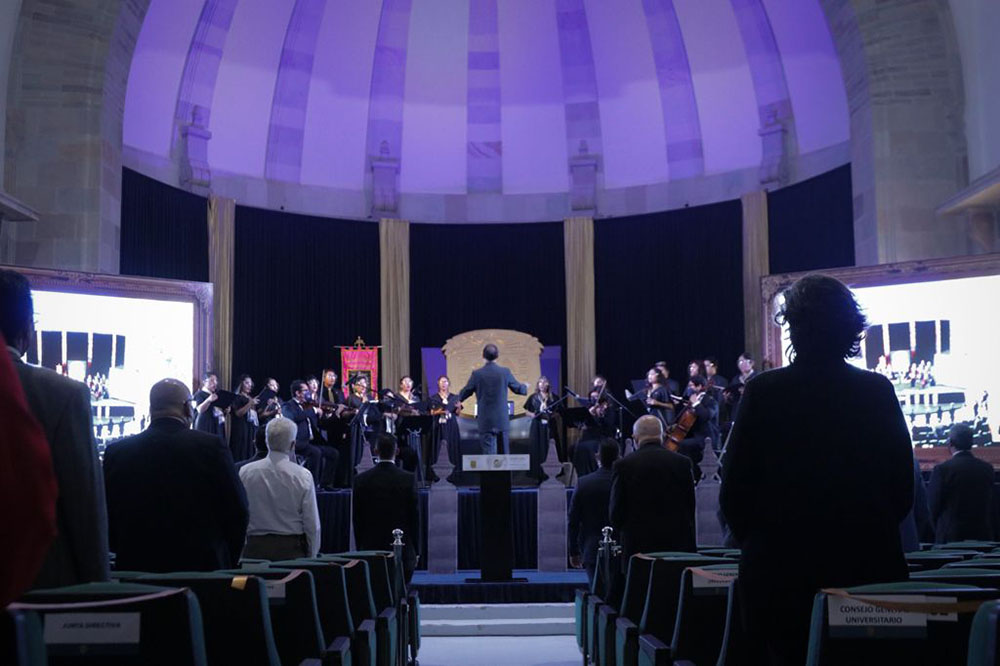 En su mensaje, el Dr. Guerrero expresó su reconocimiento a la comunidad por un año de trabajo en el que el quehacer institucional se reinventó. A la par, agradeció también el apoyo del gobierno a la Casa de Estudios, así como el voto de confianza que la sociedad deposita en su universidad.