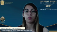 La estudiante Alma Christina Serrano Pérez, de la licenciatura en Contador Público, dirigió un mensaje a nombre de la comunidad estudiantil: "Formamos, una comunidad más justa, libre, digna y armoniosa, cuando trabajamos en equipo y obtenemos grandes resultados, como las acreditaciones de los programas educativos, que hablan de la calidad de todos los que integramos este Campus" dijo.