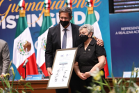 Guanajuato, Gto., a 11 de abril de 2022.- El Ayuntamiento de Guanajuato entregó el reconocimiento "Guanajuatense Distinguido" en su edición 2022 a personas que se caracterizaron por sus trayectorias y acciones ejemplares: la Mtra. Silvia Álvarez Bruneliere, el Mtro. Ramiro Eduardo Osorio Fonseca, y de manera póstuma, al Mtro. Diego León Rábago y la Mtra. Elena Torres Cuéllar.