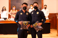 En representación de sus compañeras y compañeros, Federico Daniel Gómez Padilla, estudiante de la Licenciatura de Ingeniería Química, quien obtuvo el primer lugar en Boxeo, y la estudiante de la Licenciatura en Contador Público, representante en la disciplina de Karate Do, Andrea Kaori Hernández Moreno, externaron al resto de la comunidad deportiva los retos que implicaron la transición a una adaptación durante la pandemia.