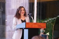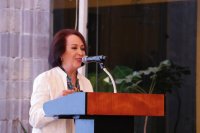 En el evento se recordó que, derivado del convenio firmado entre la Casa de Estudios y la AMEXME Capítulo León A.C, a través de su representante la Licda. Cecilia Ovalle Ríos, se otorgan 10 becas para esta primera generación del PEU. Por lo que en representación de este organiso la Mtra. Celia Montserrat Hernández Vázquez dirigió un mensaje en el que refrendo el compromiso y destacó la participación ciudadana.