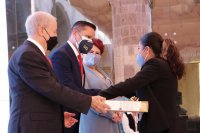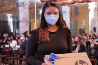 En nombre de quienes forman parte de la primera generación del Programa de Equidad Urbana, Virlemy Irly Muñiz López, exhortó "a demostrar que fuimos seleccionados por ser los mejores y no por suerte, a demostrarnos día con día y con cada reto que sí será posible culminar con nuestras licenciaturas, sabemos que nuestra vida dará un giro de 180 grados (...) vamos a afrontar muchas situaciones adversas pero que eso no nos limite, que no nos paralice. Debemos enfocarnos en nuestras metas y la principal es ser profesionistas, por eso con gran entusiasmo debemos aprovechar esta gran oportunidad única e irrepetible de ser UG".