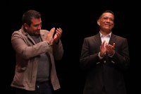 Con el Teatro Principal como escenario, el Dr. Enrique Ruelas Barajas otorgó un reconocimiento a la Universidad de Guanajuato "por dar solidez y cobijo al legado del maestro Ruelas y preservar en cervantismo en Guanajuato".