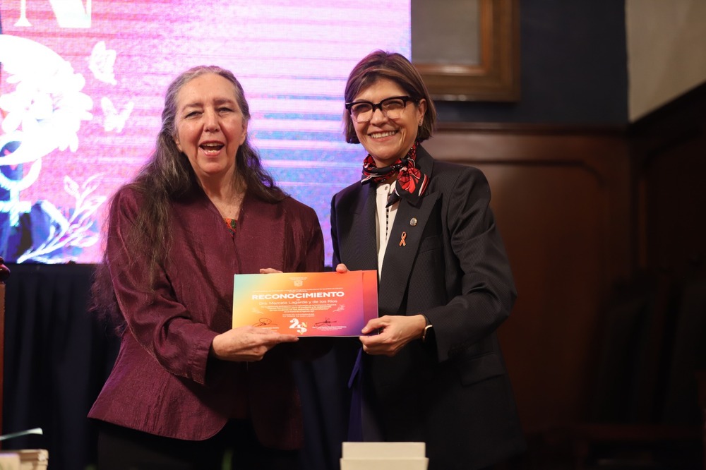 La agenda en conmemoración del 25 N es coordinada por el Programa Institucional de Igualdad de Género, por lo que la Mtra. Luz María Velázquez, Titular de UGénero, agradeció la presencia de Marcela Lagarde de quien dijo se ha aprendido, a través de su discurso y obra,: “El acuerpamiento de las mujeres, el reconocimiento en lo individual y el reconocimiento en lo colectivo”.