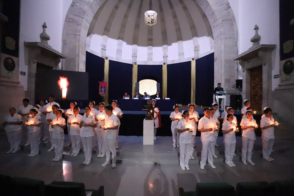 El Mtro. Alfonso Trujillo Valdivia, Secretario Académico de la DCNE, en representación del Dr. Agustín Ramón Uribe Director de dicha División, dijo que esta ceremonia es de gran significado: “el paso de la luz”, un momento donde se rinde homenaje a la dedicación y compromiso con la Enfermería.