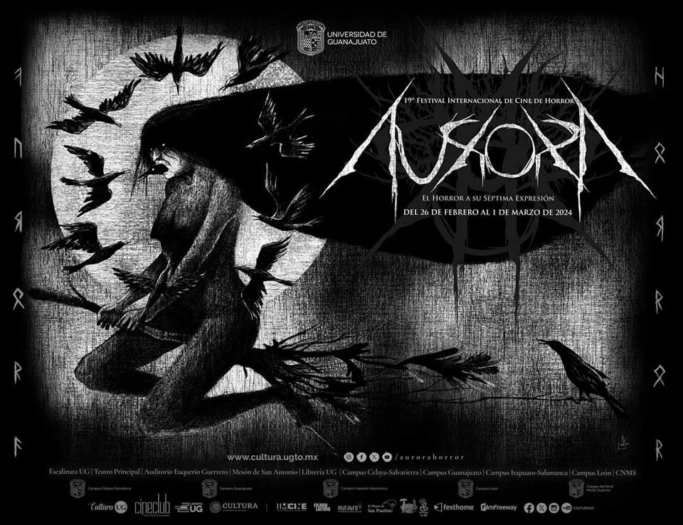 Guanajuato, Gto., a 23 de febrero de 2024.- Cortometrajes, largometrajes y actividades académicas formarán parte de la 19° edición del Festival Internacional de Cine de Horror “Aurora” que se llevará a cabo del 26 de febrero al 1 de marzo en diversos espacios y planteles de la Universidad de Guanajuato (UG) como parte de la Agenda Cultura UG (ACUG).
