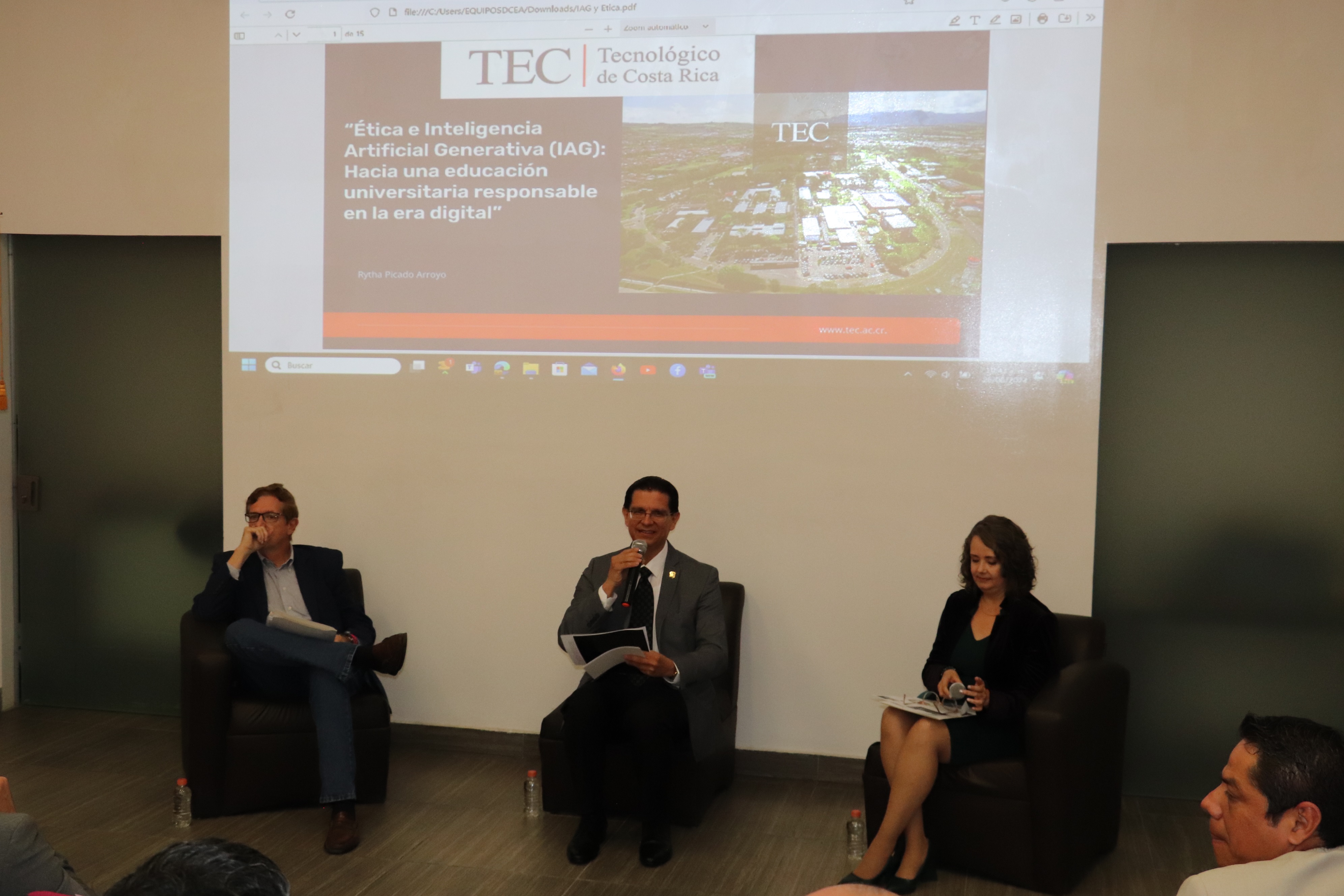 Al final de la ceremonia inaugural, se desarrolló el conversatorio “Ética e inteligencia artificial generativa, hacia una educación universitaria responsable en la era digital”, en la cual participaron el Mtro. Juan Carlos Romero Hicks, Diputado Federal por la LXIV Legislatura y la Mtra. Rytha Picado Arroyo, Profesora investigadora del instituto Tecnológico de Costa Rica (ITCR) y fungió como moderador el Dr. Martín Picón Núñez, Rector del Campus Guanajuato.