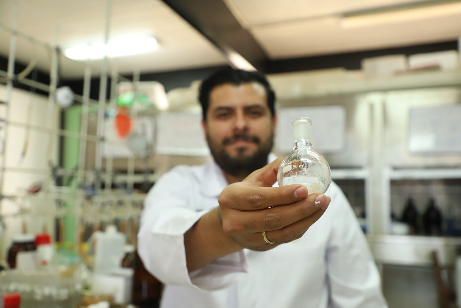 Apasionado por su campo científico en el que explica existen más de 50 mil millones de moléculas detectadas, el joven investigador trabaja día a día sintetizando moléculas que aún no son descritas sus propiedades científicas.