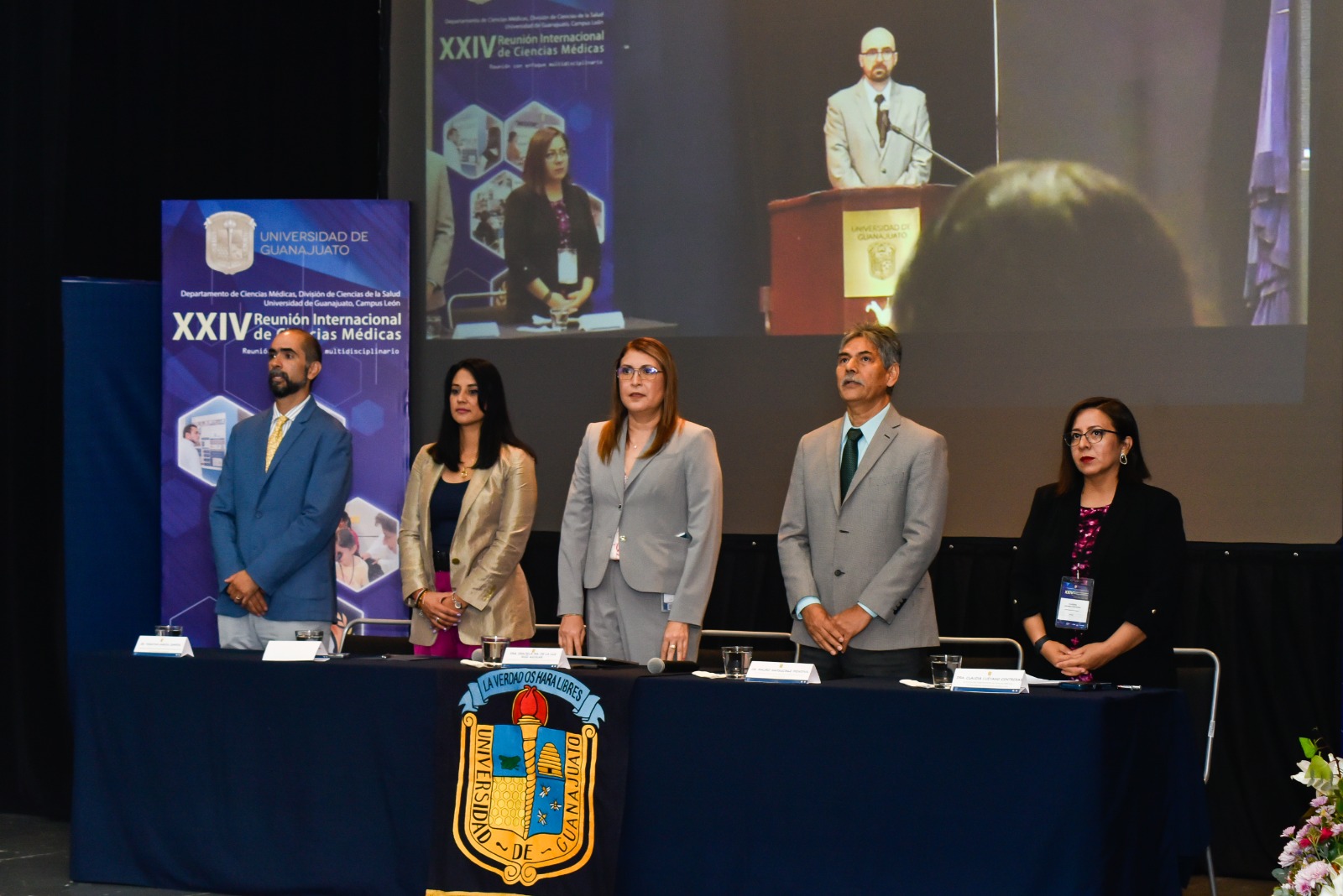 Durante la ceremonia de inauguración se contó con la presencia de la Dra. Graciela Ma. de la Luz Ruiz Aguilar, Secretaria de Gestión y Desarrollo; quien, en representación de la Rectora General de la UG, la Dra. Claudia Susana Gómez López, reconoció el trabajo durante veinticuatro años para realizar año con año este evento de colaboración internacional y desarrollo de las ciencias médicas.