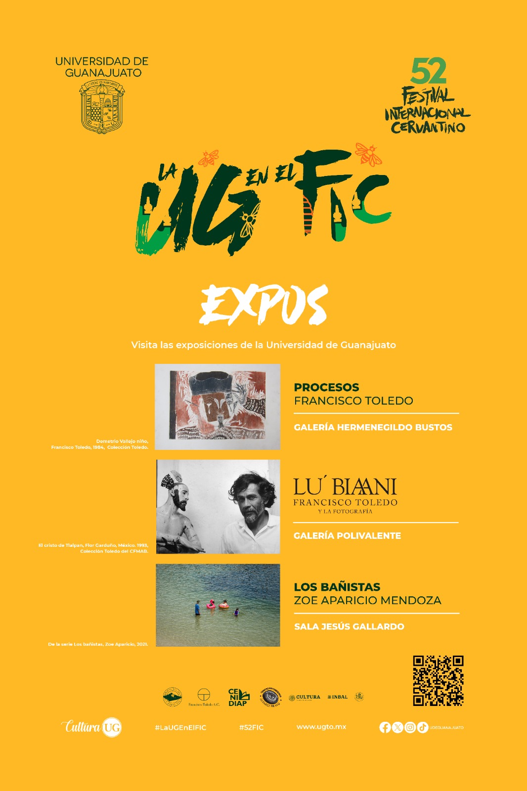 Desde el 11 de octubre y hasta febrero del 2025, en colaboración con el Instituto de Artes Gráficas de Oaxaca (IAGO), Amigos del IAGO y del Centro Fotográfico Manuel Álvarez Bravo A.C., darán inicio las exposiciones: Mujeres y artes gráficas en la colección de Toledo en la Sala temporal del Museo de la UG (MUG); Lu´ Biaani: Francisco Toledo y la fotografía en la Galería Polivalente; Procesos en la Galería Hermenegildo Bustos; Informe para una academia | Franz Kafka en el Corredor Artístico Tomas Chávez Morado; Carteles en la Galería El Atrio y Los bañistas de Zoe Aparicio en la Sala Jesús Gallardo.