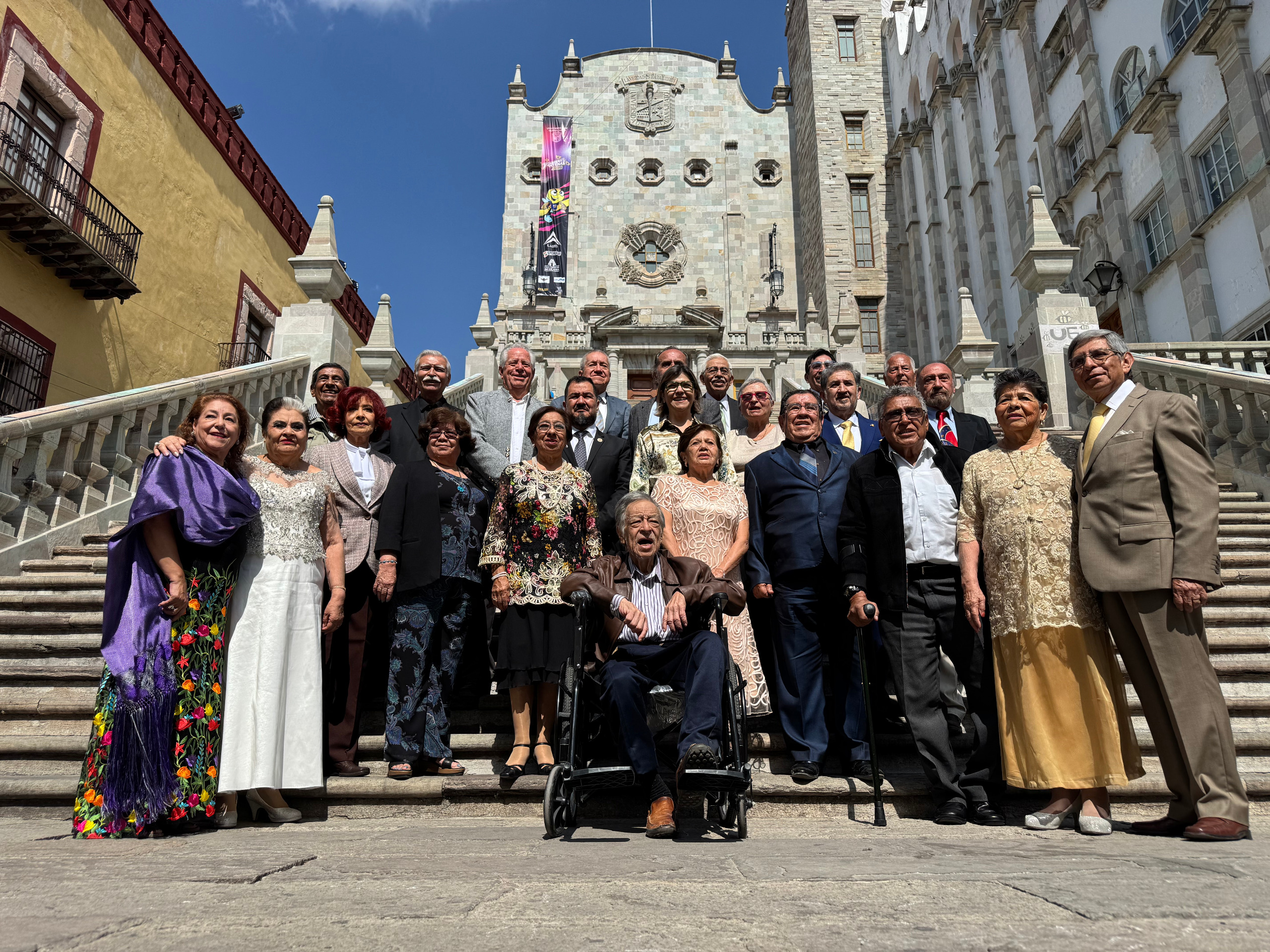 El encuentro contó con la amenización del Ensamble de Voces de la Asociación de Jubilados de la UG y quedó plasmado en fotografías, teniendo como testigo la Puerta del Cielo, ubicada en el Patio del Antiguo Colegio Jesuita de la Santísima Trinidad, así como las Escalinatas del Edificio Central.