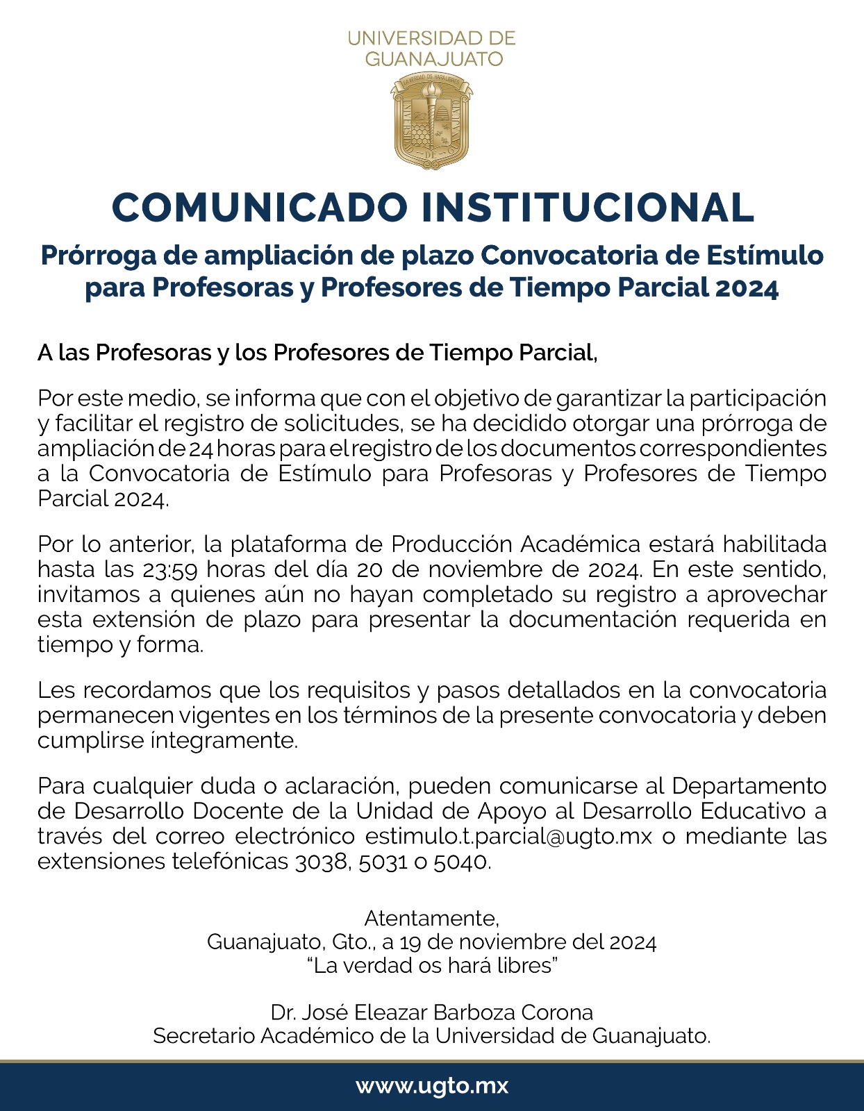 Inicio | QUEHACER INSTITUCIONAL | Comunicado Institucional