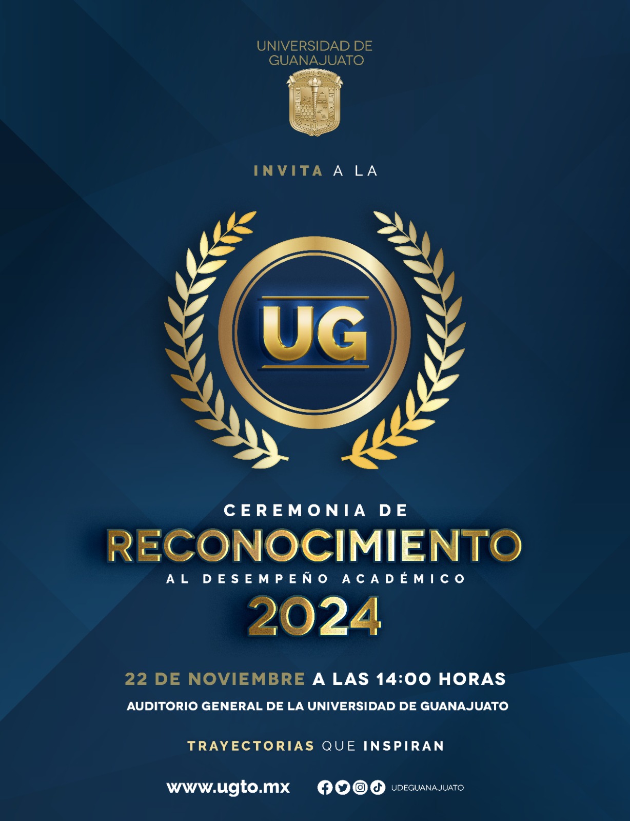 Guanajuato, Gto., a 20 de noviembre de 2024.- Será el próximo 22 de noviembre en punto de las 12:00 horas cuando se realice la Ceremonia de Reconocimiento al Aprovechamiento Académico 2024 en el Auditorio General del Edificio Central de la Casa de Estudios.