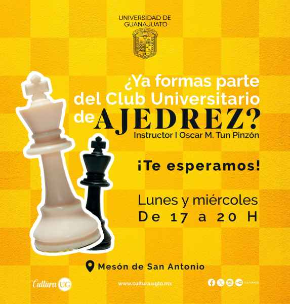 Finamente, el Club Universitario de Ajedrez continúa con sus sesiones los lunes y miércoles de 17:00 a 20:00 horas en el Mesón de San Antonio.