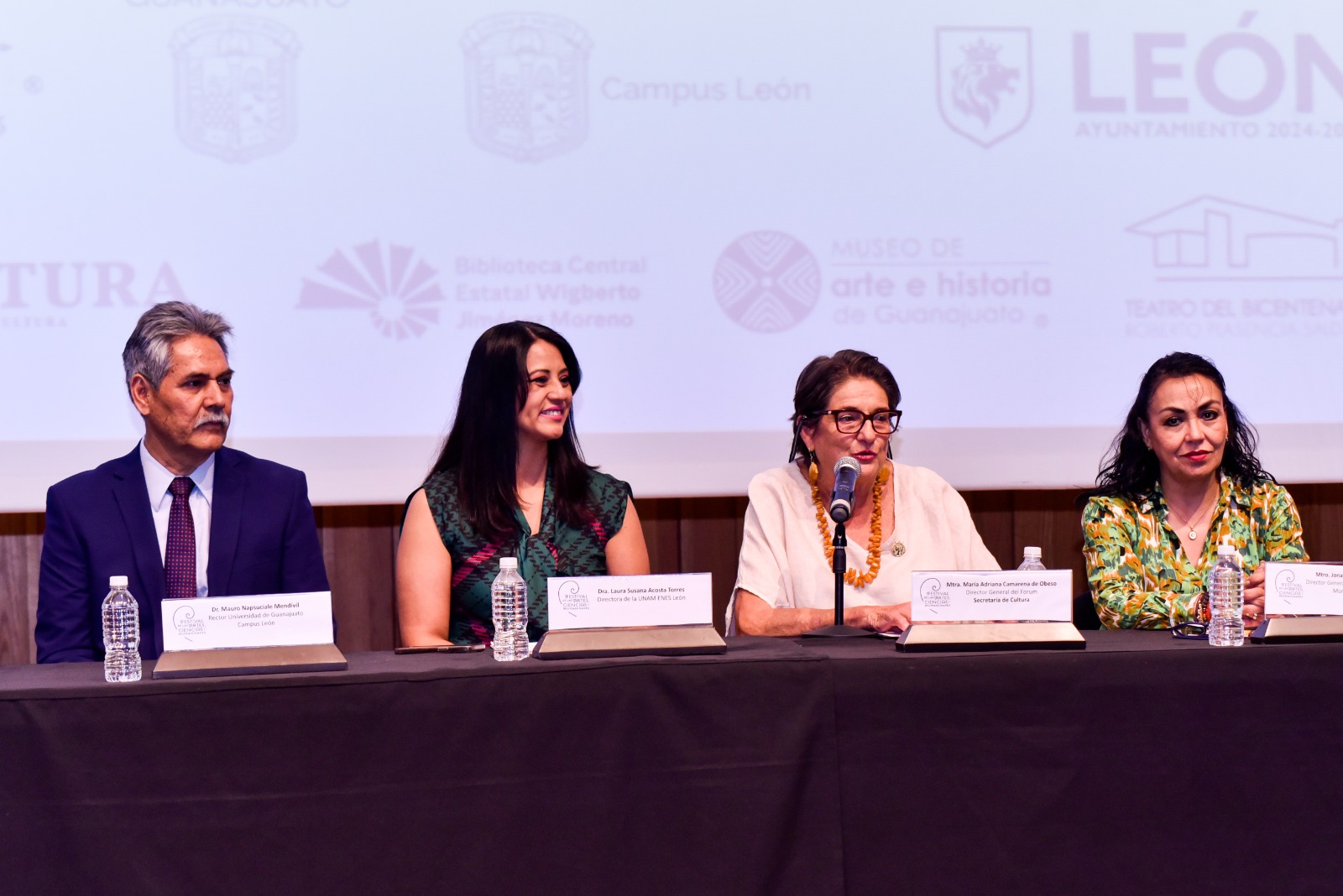 El presídium estuvo conformado por la Dra. Laura Susana Acosta Torres, Directora de las Escuela Nacional de Estudios Superiores (ENES) Unidad León de la Universidad Nacional Autónoma de México (UNAM); el Dr. Mauro Napsuciale Mendívil, Rector del Campus León de la UG; la Mtra. María Adriana Camarena de Obeso, Directora General del Forum Cultural Guanajuato; el Mtro. Alfredo Ling Altamirano, Delegado de la Secretaría de Educación en la Delegación III; la Mtra. Martha Carolina Irazaba Villalobos, en representación de la Dirección General de Educación; la Mtra. Ariadna Arandia Zamora, en representación del Centro de Ciencias Explora, y el Lic. Charvel Michael López García, en representación del Director General del Centro de Investigaciones en Óptica (CIO).