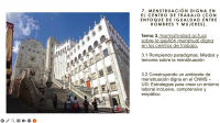 Además de clarificar la normatividad actual correspondiente a los centros de trabajo, con el fin de coadyuvar la incorporación de una política de menstruación digna vinculada a la Política Nacional de Igualdad entre mujeres y hombres.