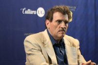 Guanajuato, Gto., a 04 de abril de 2025.- El escritor Enrique Serna, quien fue galardonado por la Universidad de Guanajuato (UG) con el VIII Premio “Jorge Ibargüengoitia” de Literatura, el cual reconoce su trayectoria y obra literaria, particularmente en el género de la novela histórica, compartió un espacio de diálogo con periodistas y público general posterior a la ceremonia.