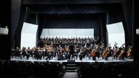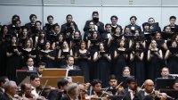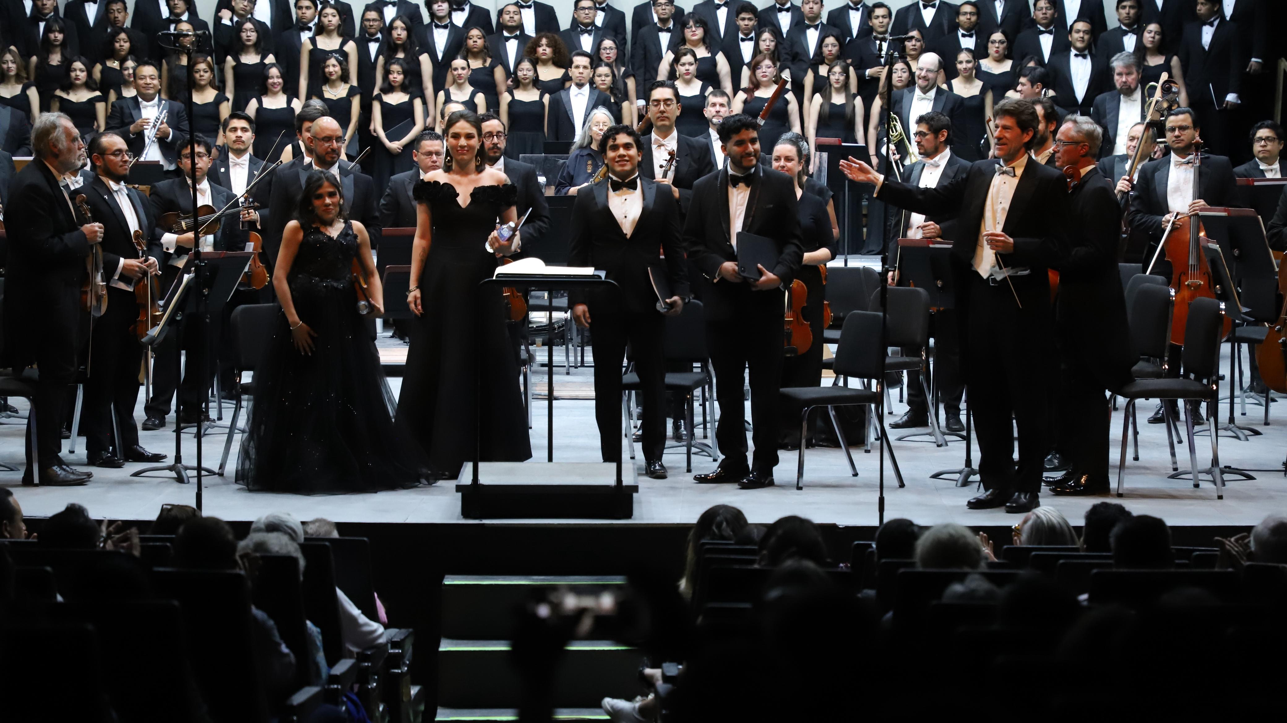 Guanajuato, Gto., a 11 de abril de 2025.- La Orquesta Sinfónica de la Universidad de Guanajuato (OSUG), bajo la batuta de su director artístico, Juan Carlos Lomónaco, interpretó dos obras de los compositores clásicos Haydn y Mozart, cuyo carácter sacro estuvo en sintonía con la tradición de la Semana Santa en Guanajuato. El Teatro Principal recibió también el talento vocal de Minerva Elizarrarás (soprano), Jharetty Guerrero (mezzosoprano), Brandon Rufino Castillo (tenor), Carlos Alfaro (barítono) y el Coro del Conservatorio de Celaya, dirigido por Isabel Rico.