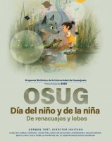 Guanajuato, Gto., a 28 de abril de 2025.- En el marco del Día del niño y la niña, la Orquesta Sinfónica de la Universidad de Guanajuato (OSUG) y Germán Tort, director invitado, consentirán al público infantil con el programa “De renacuajos y lobos”, el próximo 30 de abril, con dos funciones en el Teatro Juárez: a las 12:00 y a las 18:00 horas.