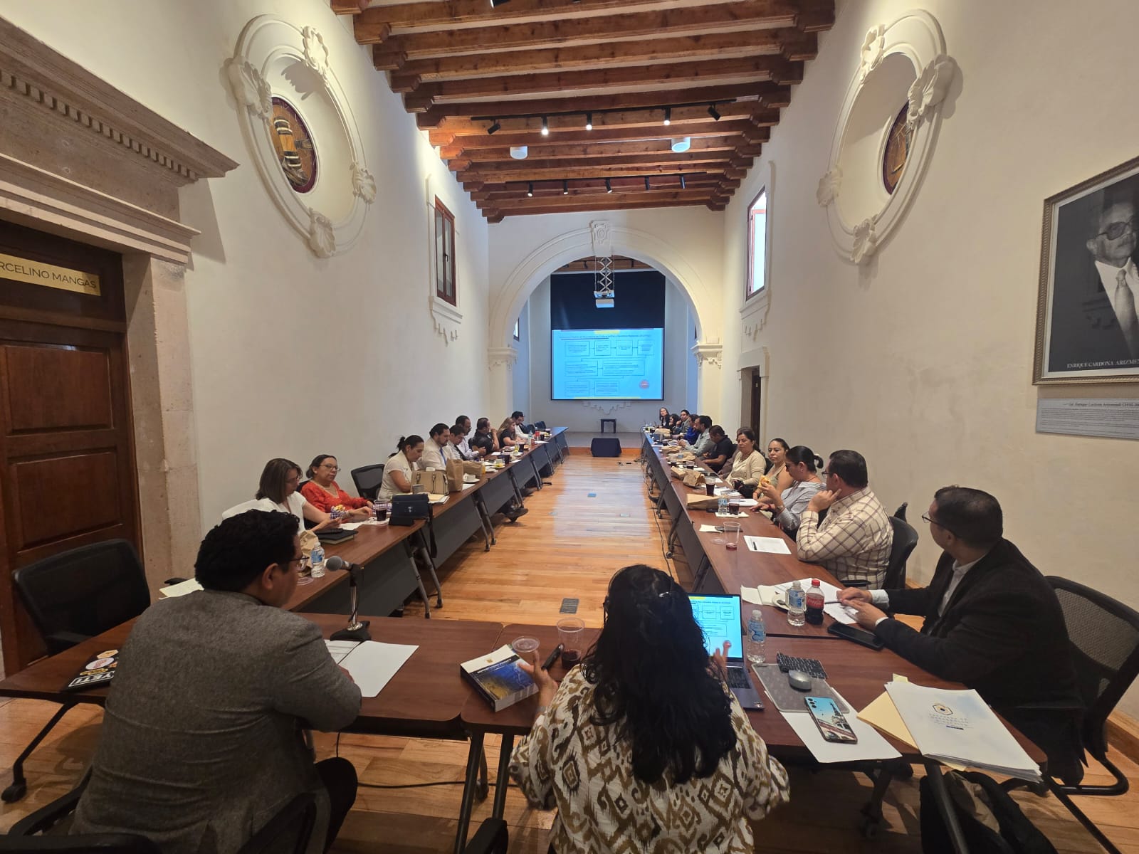 La reunión fue presidida por la Mtra. Iliana Alejandra Bernardino Cruz, Abogada General de la Universidad de Guanajuato; la Mtra. Candelaria Palafox Gutiérrez, Coordinadora de la Plataforma Ecopaz; la Lic. Noemí del Rosario Durán Mendoza, Secretaria Técnica de la Comisión de Honor y Justicia del Consejo General Universitario; y el Lic. Juan Carlos Reynoso Reynoso, Coordinador de Defensa Legal.