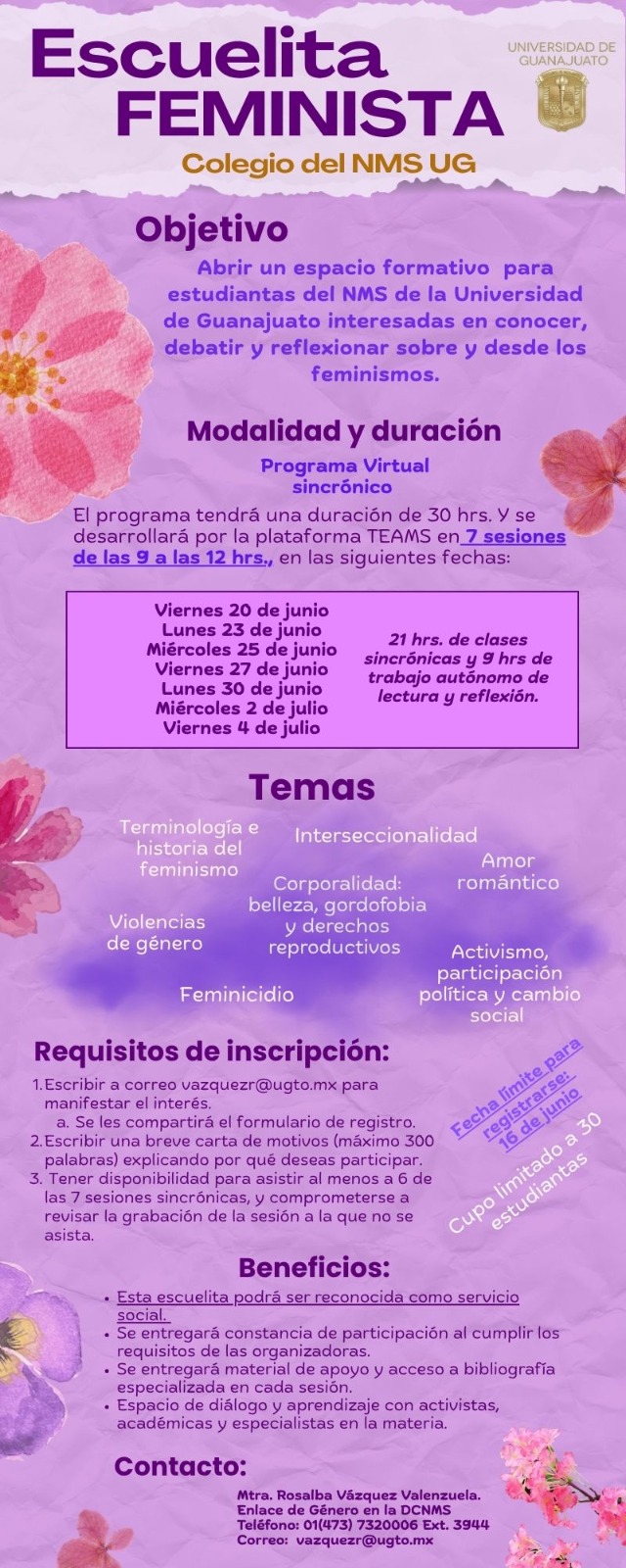 Guanajuato, Gto., a 29 de julio de 2025.- Como parte de un proyecto de formación feminista dirigido a las estudiantes del Colegio de Nivel Medio Superior (CNMS) de la Universidad de Guanajuato (UG), se llevó a cabo la primera edición de la Escuelita Feminista, un espacio de formación y diálogo para jóvenes interesadas en conocer y reflexionar desde los feminismos.