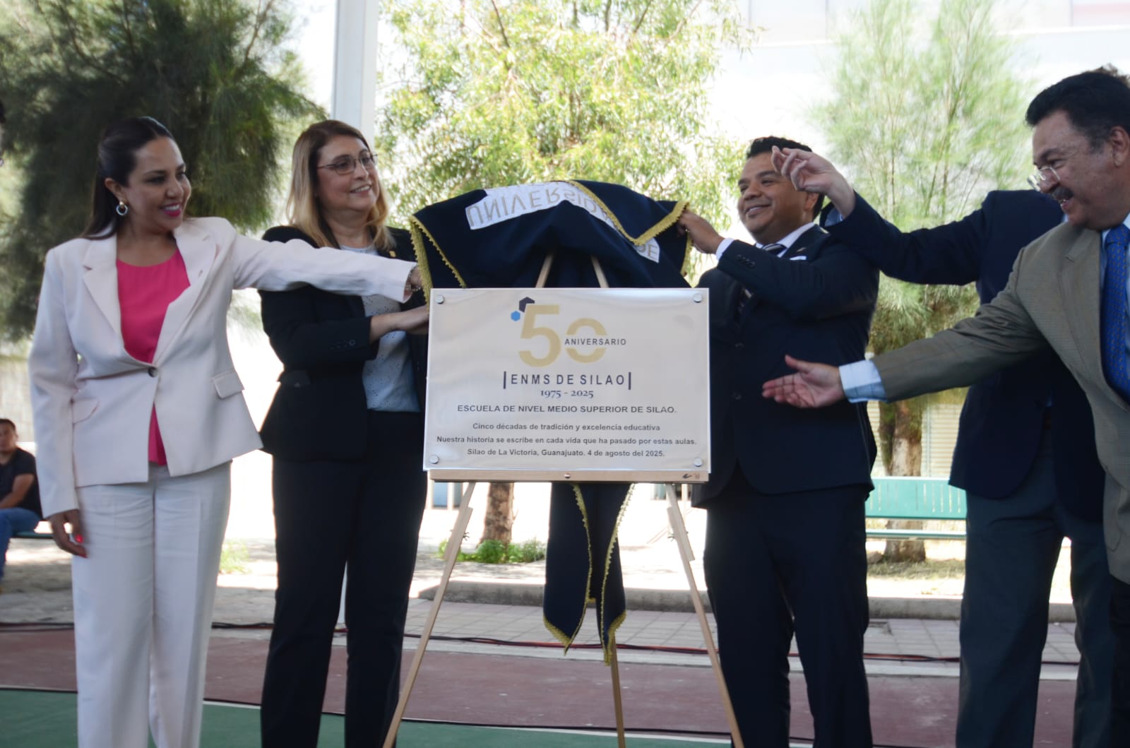 Guanajuato, Gto., a 04 de agosto de 2025.- En una emotiva ceremonia, la comunidad de la Universidad de Guanajuato (UG) conmemoró el 50 aniversario de la Escuela de Nivel Medio Superior de Silao (ENMS Silao), fundada el 4 de agosto de 1975 ante la necesidad de contar con una institución de educación pública en el municipio. En aquel entonces, los jóvenes debían trasladarse a León, Irapuato o Guanajuato para continuar sus estudios.