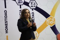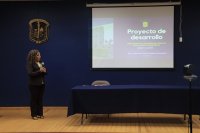La candidata, Dra. María de Jesús Jiménez González presentó a las y los asistentes, entre los que se encontraban integrantes de la Junta Directiva de la Universidad de Guanajuato, su proyecto de desarrollo para la DCSI.