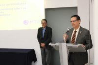 Durante la ceremonia inaugural del “Concurso Institucional 3MT 2025”, el Dr. Martín Picón Núñez, Rector del Campus Guanajuato, exhortó a las y los participantes a disfrutar e incluso divertirse al exponer sus trabajos de investigación, recalcó “comunicar el trabajo académico le da sentido a la labor educativa”.