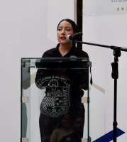 Mariana Santibáñez Barrientos, alumna e integrante del comité organizador, dio la bienvenida a las y los estudiantes de primer ingreso; asimismo, agradeció por contar con espacios que permiten adquirir y desarrollar conocimientos, descubrir nuevos horizontes dentro de la Medicina veterinaria y la Zootecnia que hacen crecer esa bella profesión, describió.